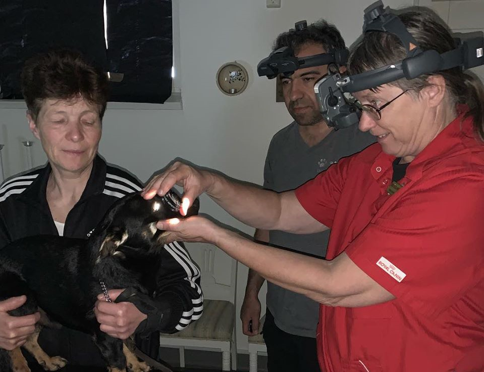 Ögonlysningen går snabbt och är ofta färdig på 20 minuter. Den utförs av Mojje som är auktoriserad ögonlysare eller av Inger Kjellander som ofta besöker vår klinik. Allt som ofta har vi gästbesök på kliniken där meriterade specialister från olika delar av Sverige har hjälpt oss med detta. Kom ihåg att ta med ert registreringsbevis för katten eller hunden samt gamla ögonintyg på tidigare ögonlysningar.